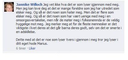 Ruby Harrold-Claesson, tirsdag 23.10. 2012 kl. 1.41, Facebook-melding: